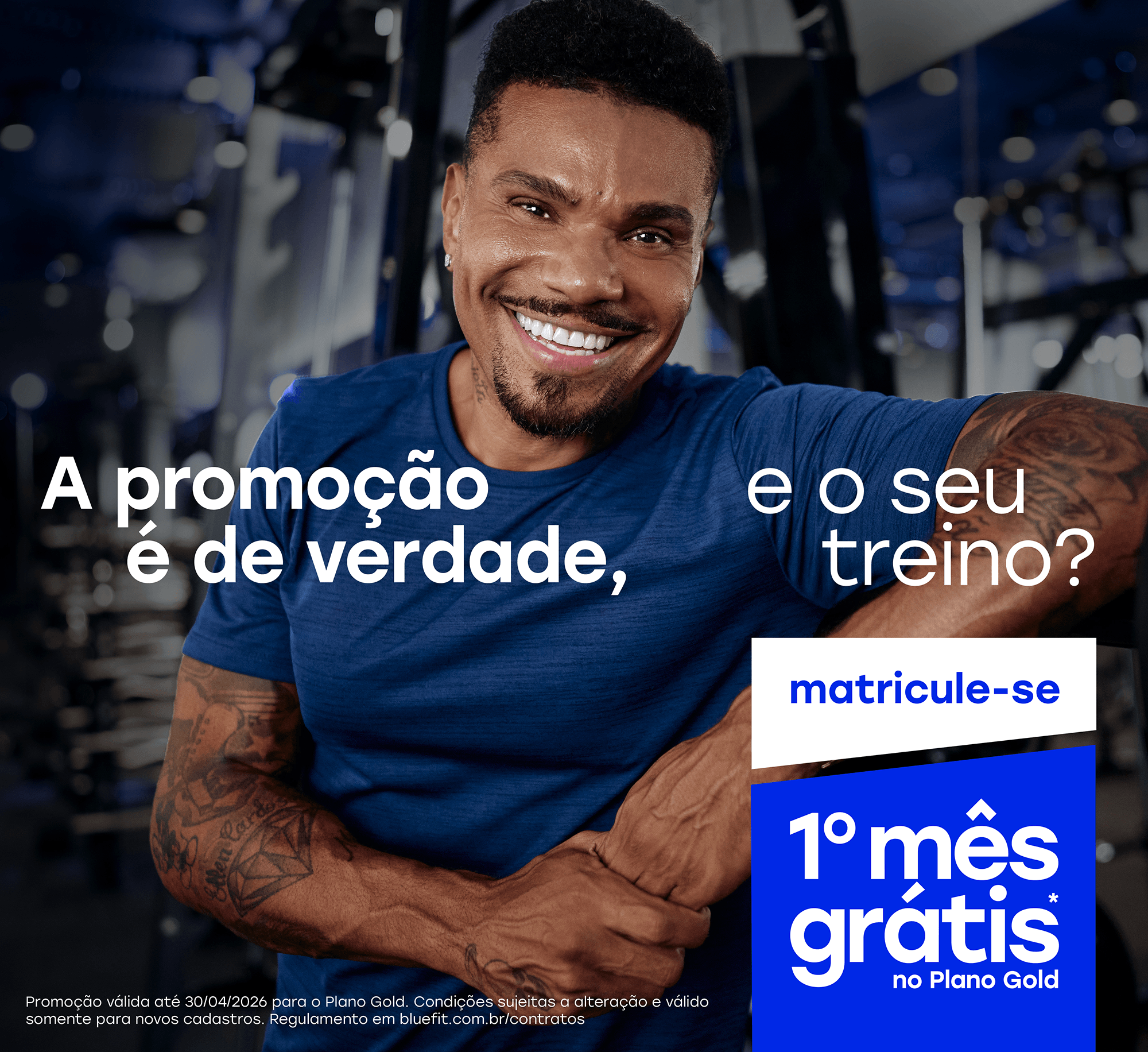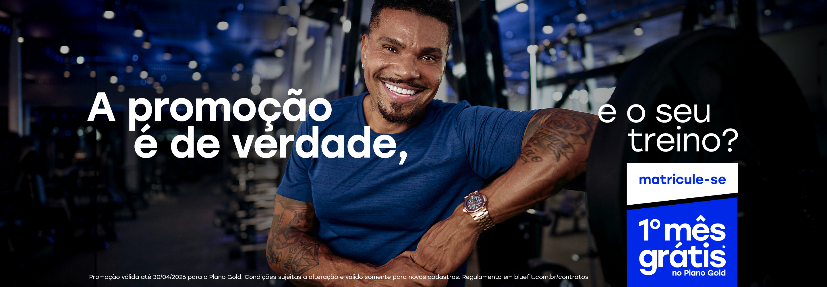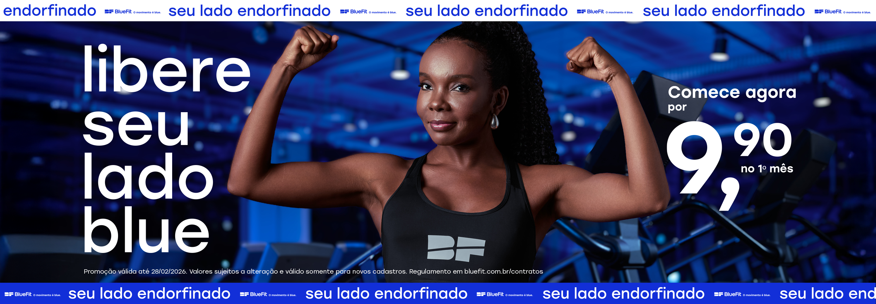 O preço da mensalidade não inclui taxas de matrícula e manutenção. Pagamento mensal por cartão de crédito. O preço mínimo pode variar entre os planos e as unidades. Consulte a relação de unidades em www.bluefit.com.br. Sujeito a alterações sem aviso prévio. Não aceitamos cheques. As Taxas de Manutenção e matrícula aparecerão no seu cartão de crédito somadas e com o nome "Taxa de Adesão".