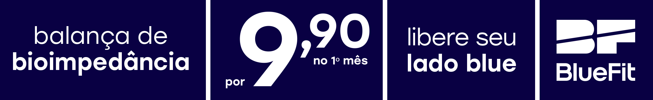 O preço da mensalidade não inclui taxas de matrícula e manutenção. Pagamento mensal por cartão de crédito. O preço mínimo pode variar entre os planos e as unidades. Consulte a relação de unidades em www.bluefit.com.br. Sujeito a alterações sem aviso prévio. Não aceitamos cheques. As Taxas de Manutenção e matrícula aparecerão no seu cartão de crédito somadas e com o nome "Taxa de Adesão".