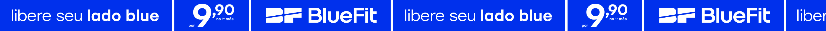 O preço da mensalidade não inclui taxas de matrícula e manutenção. Pagamento mensal por cartão de crédito. O preço mínimo pode variar entre os planos e as unidades. Consulte a relação de unidades em www.bluefit.com.br. Sujeito a alterações sem aviso prévio. Não aceitamos cheques. As Taxas de Manutenção e matrícula aparecerão no seu cartão de crédito somadas e com o nome "Taxa de Adesão".