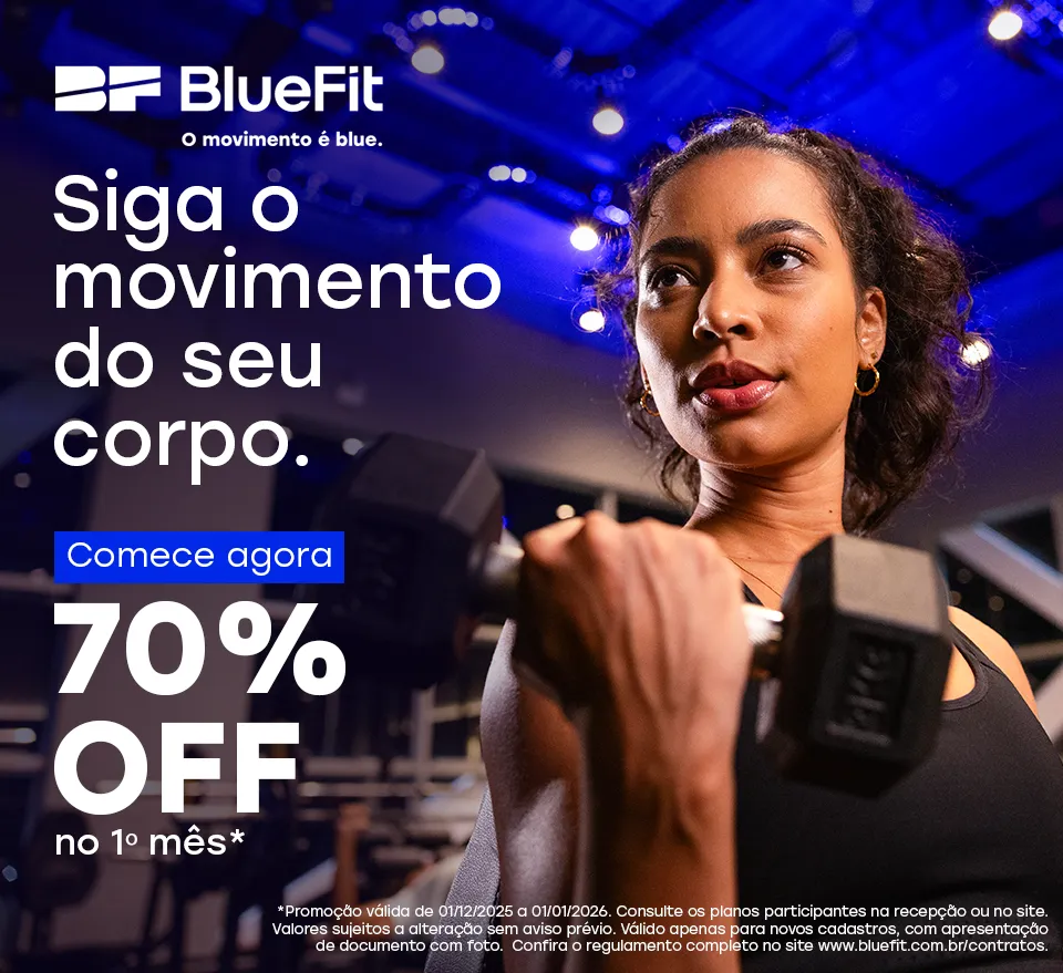 O preço da mensalidade não inclui taxas de matrícula e manutenção. Pagamento mensal por cartão de crédito. O preço mínimo pode variar entre os planos e as unidades. Consulte a relação de unidades em www.bluefit.com.br. Sujeito a alterações sem aviso prévio. Não aceitamos cheques. As Taxas de Manutenção e matrícula aparecerão no seu cartão de crédito somadas e com o nome "Taxa de Adesão".